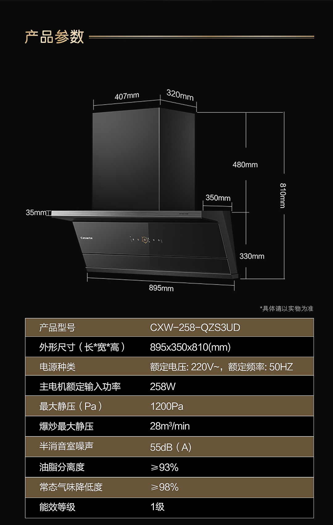 卡萨帝侧吸烟机 CXW-258-QZS3UD (风量28...
